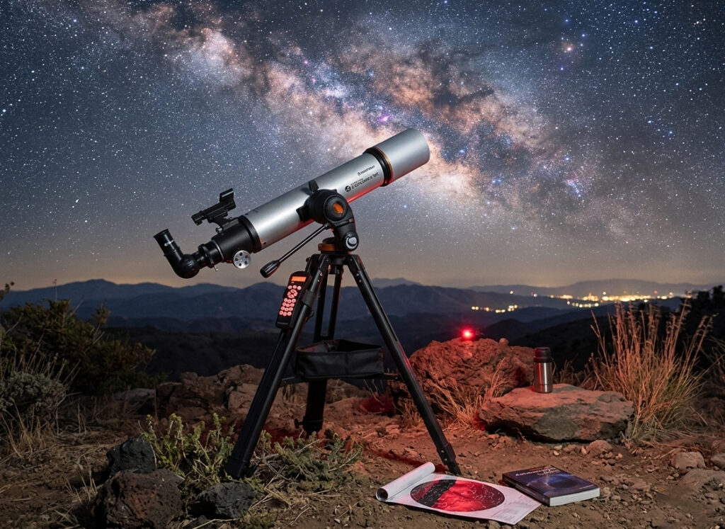 Exploring the night sky is as much about the gear as it is about the location. For your first outing, try a high-quality pair of 10×50 binoculars alongside your telescope; they are invaluable for learning the constellations before you zoom in.