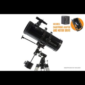 - Accessories include a 20mm and 4mm eyepiece, a finderscope, a Barlow Lens, a smartphone adapter, a moon filter, and a motor drive