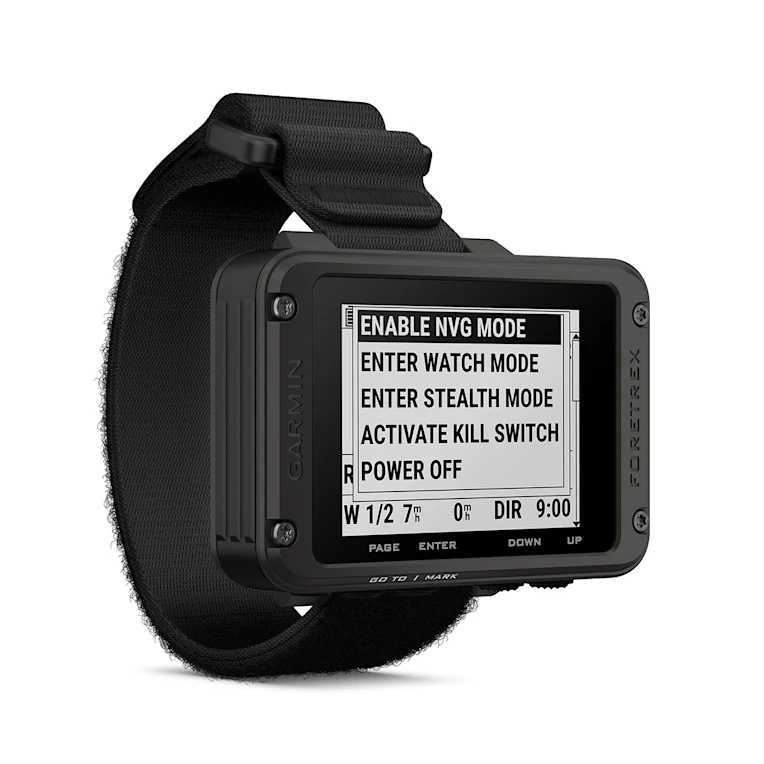 Make the mission possible with the Foretrex® 801 wrist-mounted GPS navigator. Navigate with improved positional accuracy, thanks to the upgraded multi-band signal reception technology. Get up to 100 hours of battery life in GPS mode. Tactical features, such as jumpmaster mode, stealth mode and kill switch, equip you for the mission and beyond. The improved monochromatic screen gives you better visibility in all lighting conditions and is easy to read with night vision goggles. The rugged device is built to military standards and has an IPX7 water rating. Plan and review your adventures with the Garmin Explore™ smartphone app. Get smart notifications and inReach® device messages delivered to Foretrex 801 when connected to your compatible smartphone or your inReach satellite communicator (active subscription required; jurisdiction restrictions may apply).