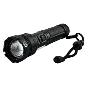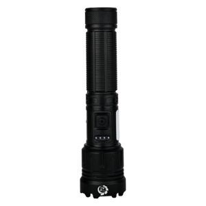 The main LED light offers three distinct modes — high, low, and flashing — so users can adjust the beam based on specific tasks. Whether it’s quiet night surveillance, sudden alerts, or long-distance spotting, this flashlight offers the flexibility to switch lighting modes effortlessly. The COB side light adds an extra layer of usability, allowing for wide-area lighting when working on tasks close-up, like inspecting maps or recording field notes.
